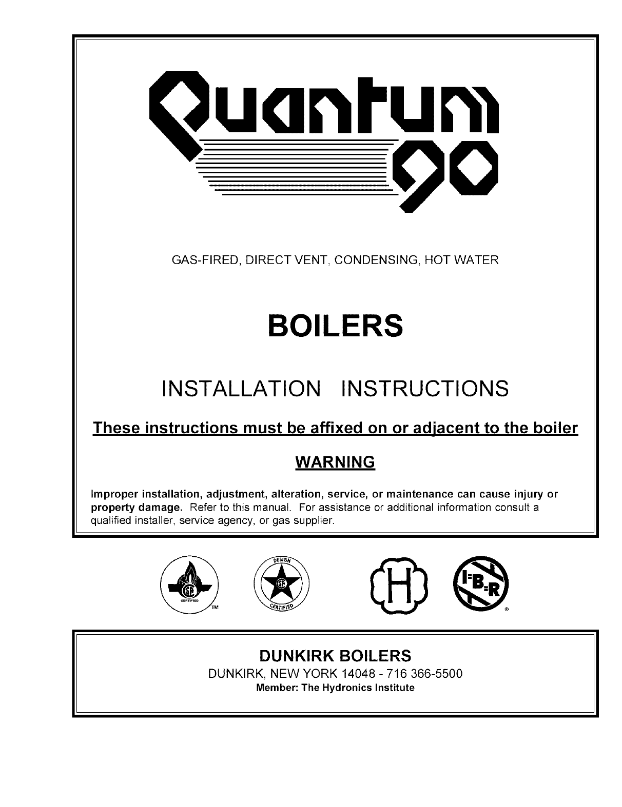 @@ dunkirk boilers dunkirk, new york 14048. Fri apr 20 15:33:15 2007 author : Boilers installation instructions these instructions must be affixed on or adjacent to the boiler.