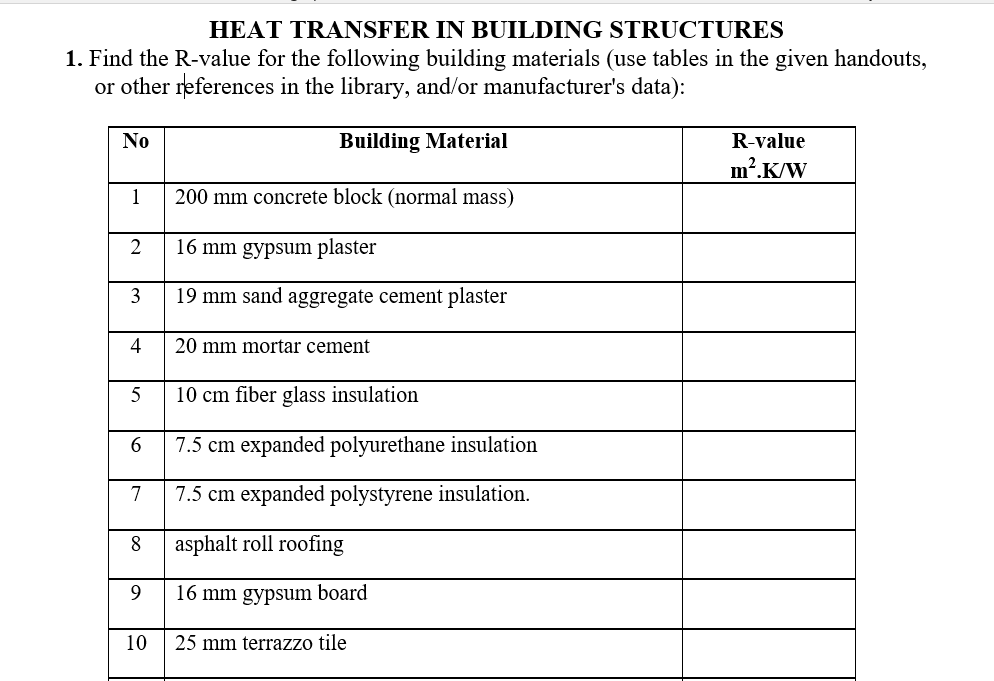 Solved Heat Transfer In Building Structures 1. Find The | Chegg.com