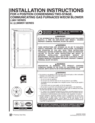 95% residential gas furnace csa certified. Install this furnace only in a location.