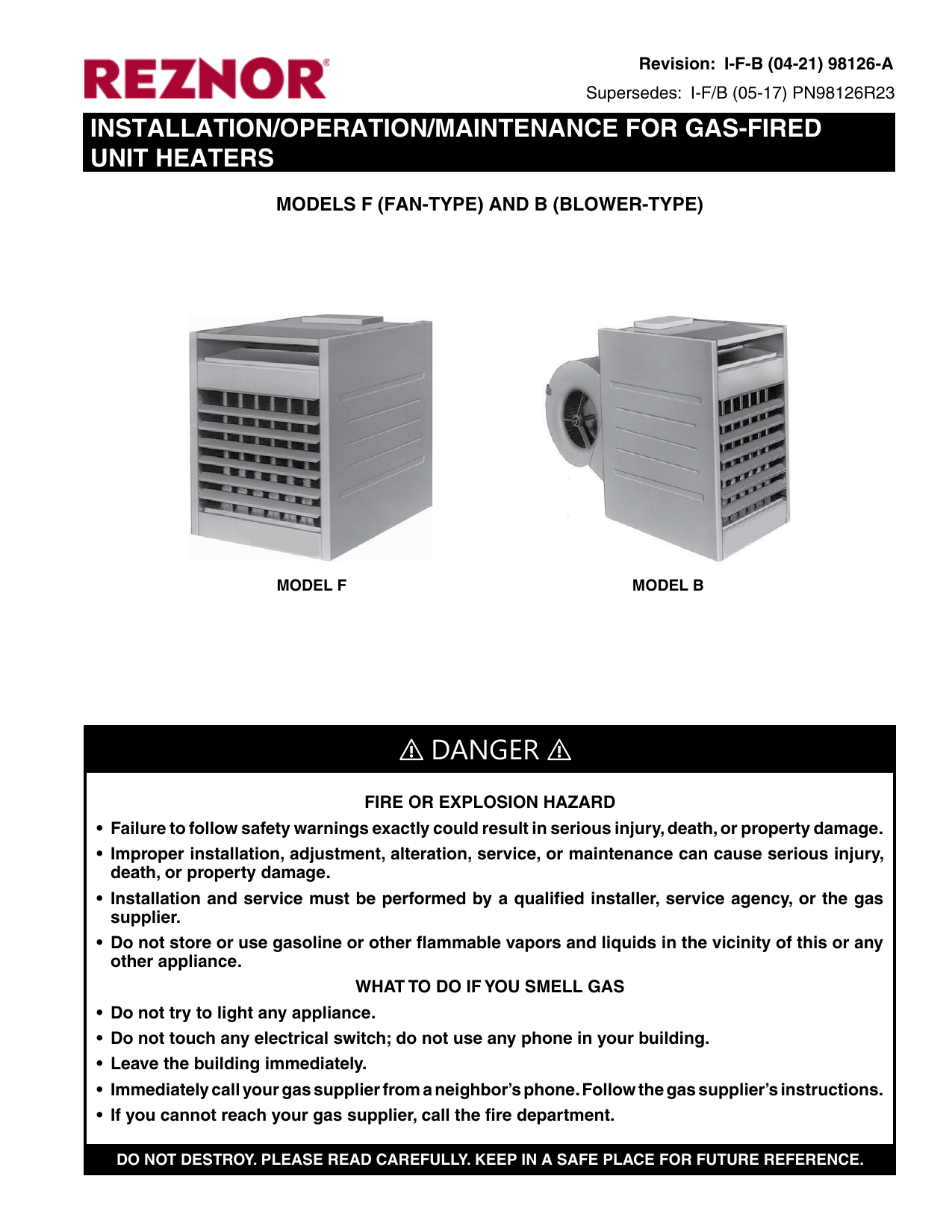 Reznor F Installation Manual | Manualzz