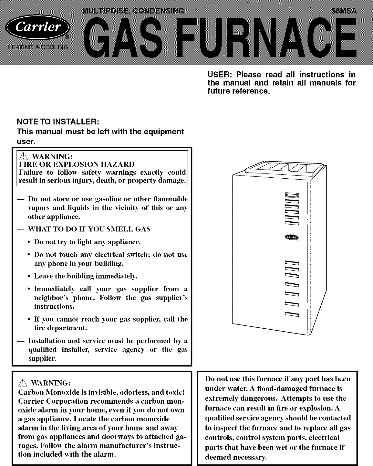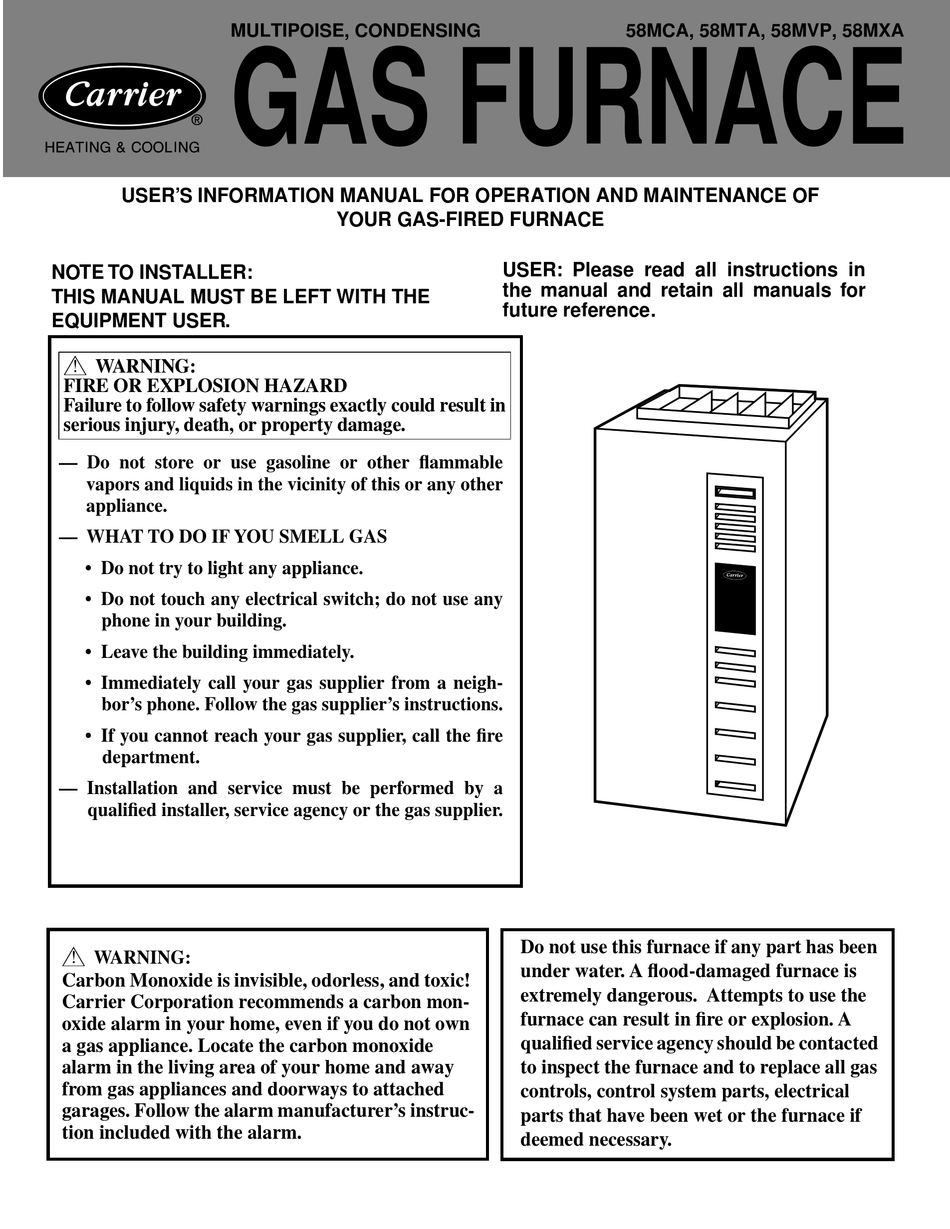 Carrier gas furnace manual. All flue gas carrying areas external to the furnace (i.e. Carrier furnace gas furnace 58mxa service and maintenance instructions (20 pages, 0.54 mb) A revolutionary design employs 2 heat exchangers to squeeze out the maximum amount of heat from the fuel consumed.