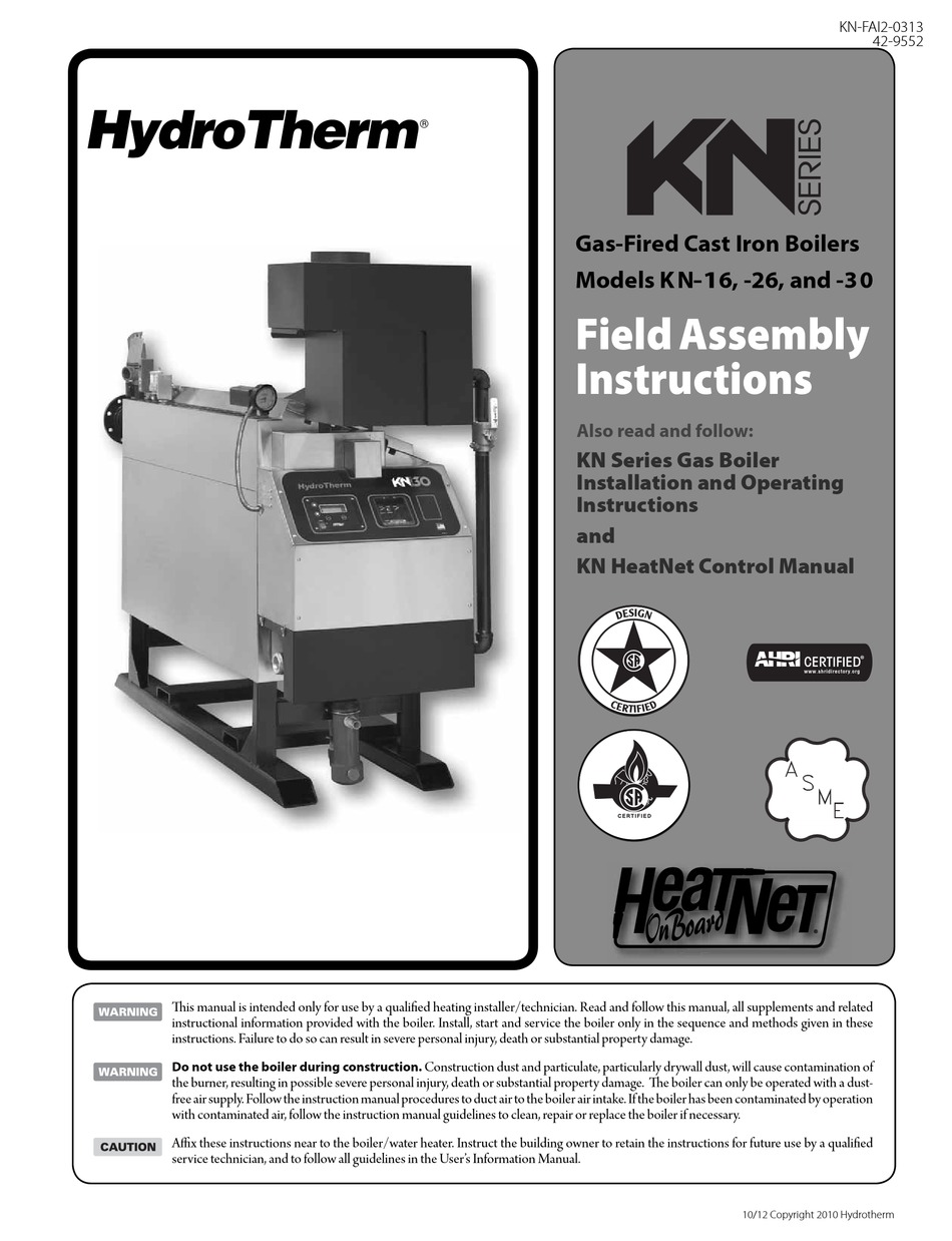With hydrotherm you also get unmatched flexibility in manufacturing to accommodate your needs. Is manual is intended only for use by a quali ed heating installer/technician. Ratings & capacities before installing the kn boiler check the rating plate to