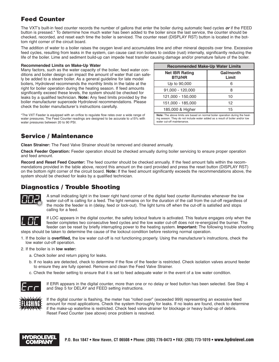 Feed Counter, Service / Maintenance, Diagnostics / Trouble Shooting | Hydrolevel Vxt-120 V2 User Manual | Page 4 / 4 | Original Mode
