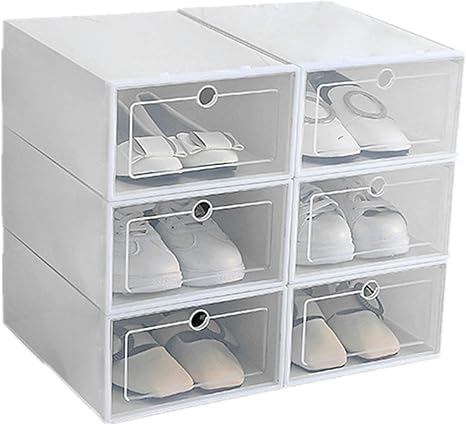 Amazon Com Stackable Storage Shoe Box Fornorm 6 Pack Clear Plastic Shoe Organizer Foldable Shoe Box Drawer For Kids And Adults Shoe Storage Home Improvement