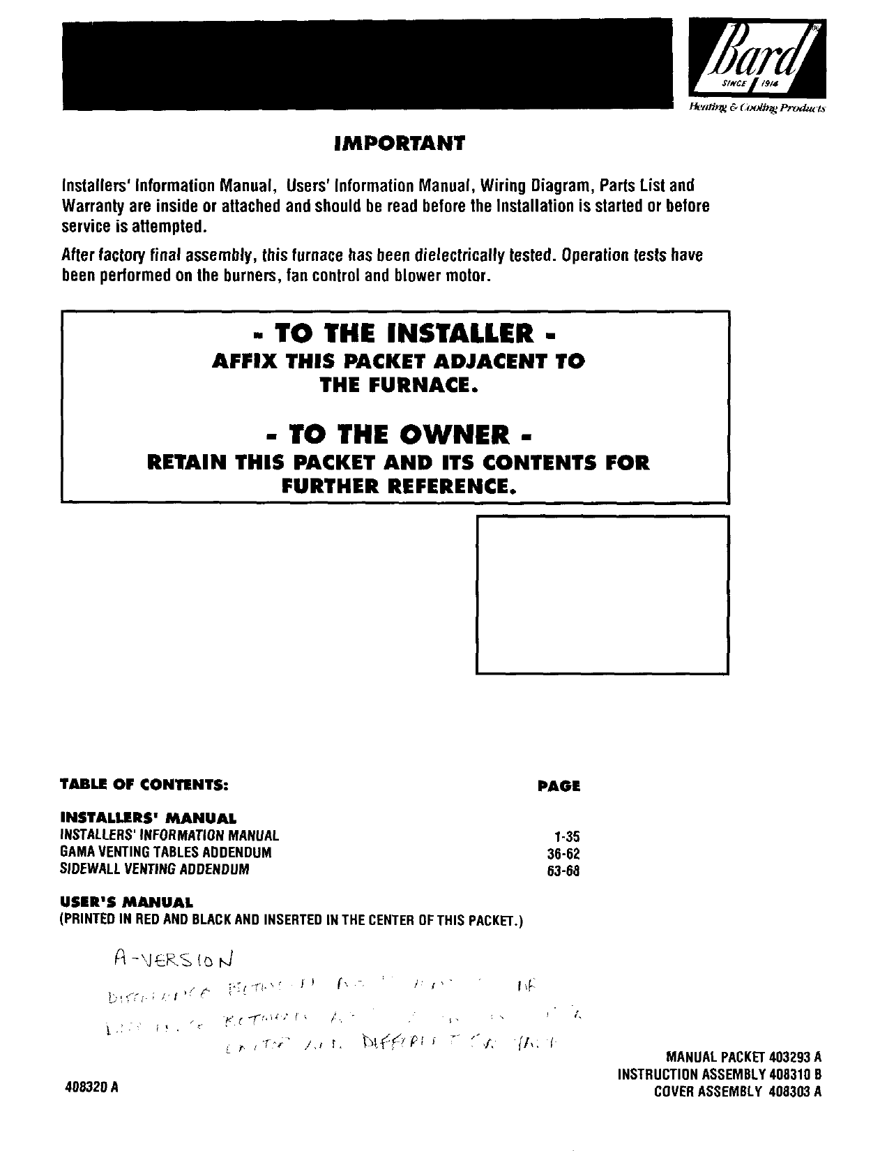 We have a bard furnace that we use very little, ho. Free bard furnace hvac nstallation & service manuals, wiring diagrams, parts lists. Bard hvac data tags decode as follows: